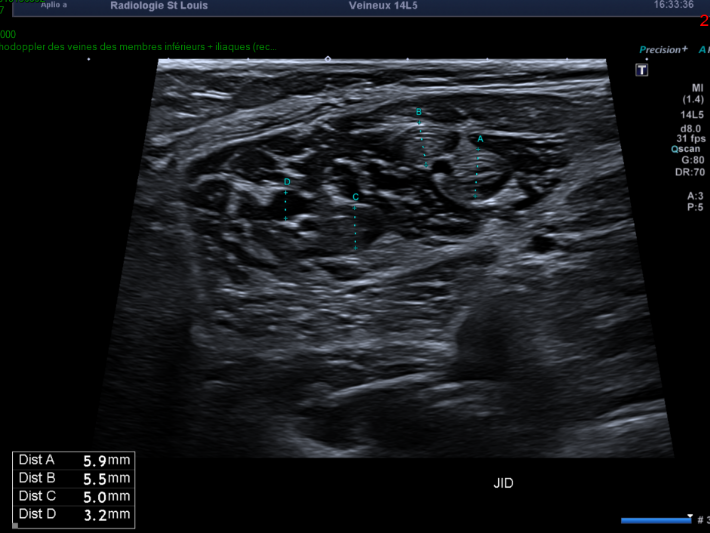 Mais l’échographiste n’arrête pas son regard uniquement sur cet hématome, il vérifie la perméabilité des réseaux veineux superficiel et profond.